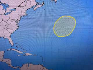 There is no activity in the area highlighted and I guess whatever forms must come from the upper (T.U.T.T.) low NE of the islands? The low off New England is a surface cold low(yellow arrow) so i guess the spin out over the Atlantic is the system NHC will follow.